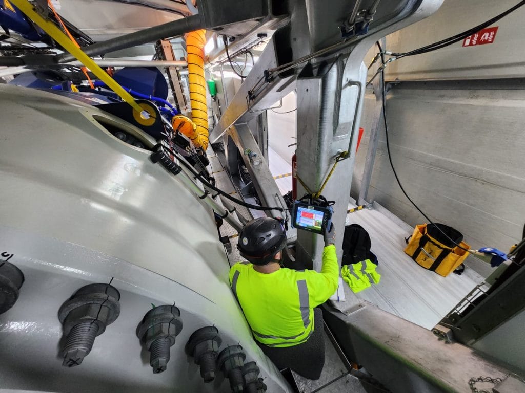 Our team Conducting Phased Array inspections on an offshore Wind Turbine